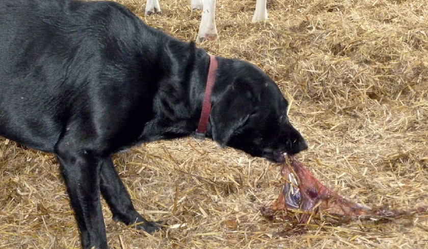 Der Hofhund kann sich beispielsweise mit dem Infektionserreger Neospora caninum infizieren, scheidet diesen in Folge über Wochen aus und die Kühe nehmen den Erreger über kontaminiertes Futter und Wasser wieder auf, womit der Kreislauf geschlossen ist. In Folge kann es zu Aborten oder zur Geburt lebensschwacher Kälber kommen. Damit dies vermieden wird, sollten Hunde und Katzen regelmässig entwurmt und generell möglichst vom Stall ferngehalten werden. Das rasche Entfernen der Nachgeburt und die verschlossene Verwahrung von Futter kann das Risiko ebenfalls senken. Ausserdem ist es sinnvoll, Hinweisschilder für Wanderer und Spaziergänger am Weiderand über die richtige Handhabung von Hunden und die Entsorgung des Hundekots anzubringen.